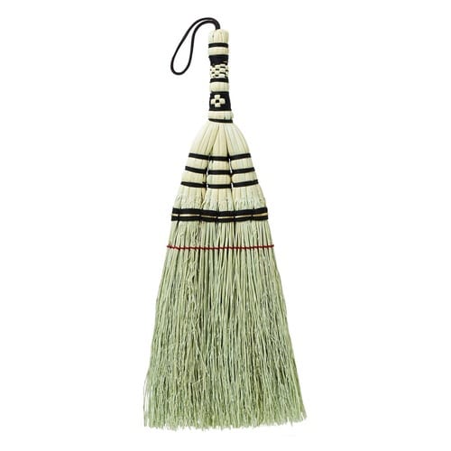 箒職人が手で編んだ、高級感のあるほうきです。 弾力としなりがある天然草で、畳や床を優しく掃けます。 紐が付いているので掛けて収納できます。 |