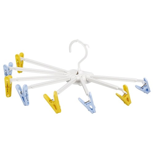 半円なので壁際など場所を取らずに使用できます。 シャワーフックや浴室のタオルバーに掛けられるので、下着類の浴室乾燥におすすめです。 ピンチが8個付いているので便利です。 |