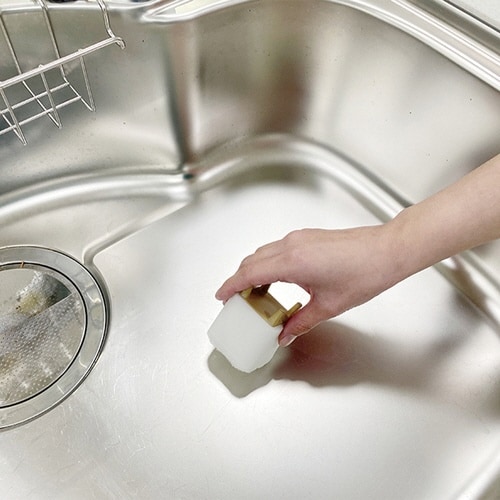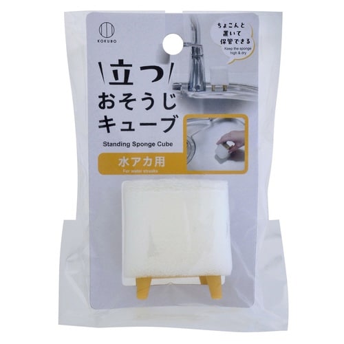 キューブ型の水アカ用のクリーナーです。 キッチンや洗面台の水アカなど、水回りの掃除にお使いいただけます。 4本の脚が付いており、立てて置けるので通気性がよく、衛生的に保管できます。 |