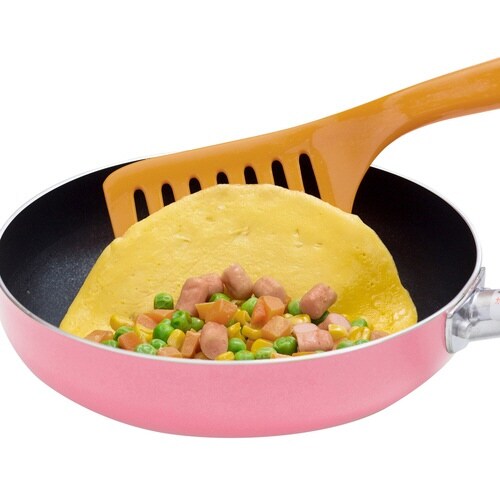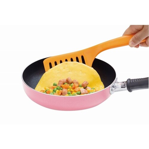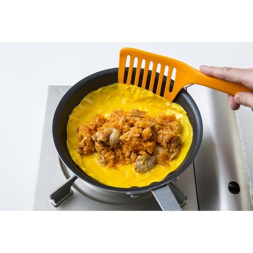 横からすくってスムーズに返せるターナーです。 具材の下にスッと入ります。 フライパンの上でカットするのも便利です。 持ちやすいストレートハンドルです。 |