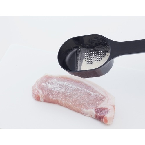 少量の粉を必要な分だけ手軽にまぶせる粉ふるいスプーンです。 お料理の下ごしらえやお菓子作りに便利です。 粉をすくってスプーンの底の網からふるうだけで均等にまぶせます。 |