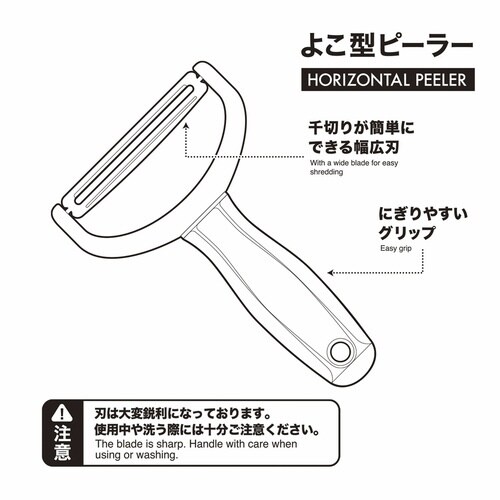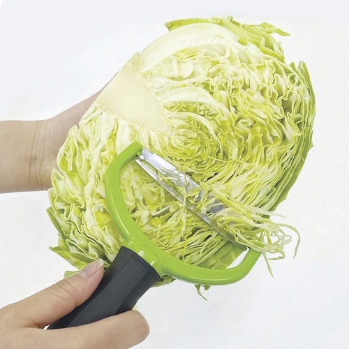 キャベツの千切りが簡単にできる、幅広刃のピーラーです。 エラストマー素材のグリップですべりにくく、しっかり握れます。 千切りはもちろん、バターナッツかぼちゃ、ナス、大根など厚めの皮むきにも最適です。 |