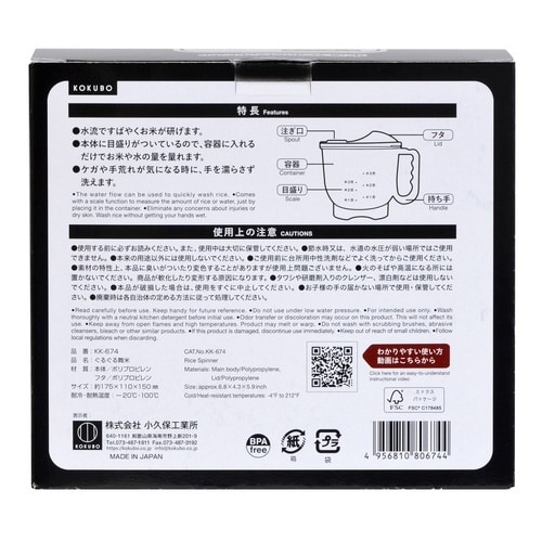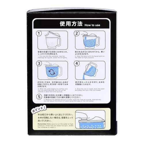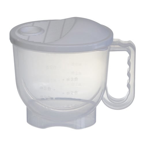 水流でお米を回転させ、手を濡らさずにお米を研げます。 水が冷たい季節や、ケガ・手荒れが気になる時に便利です。 目盛り付きなので容器に入れるだけでお米や水の量をはかれます。 お米1合から3合用です。 |
