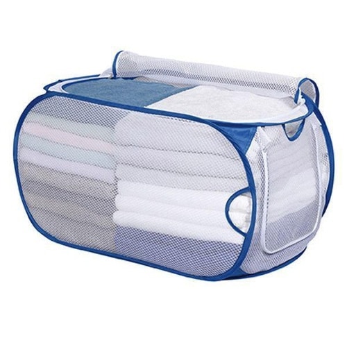 縦でも横でも使える、2WAYタイプのハンパー&バスケットです。 縦と横の2面にジッパー式のフタが付いています。 移動に便利な手さげホールが付いているので、持ち運びに便利です。 |