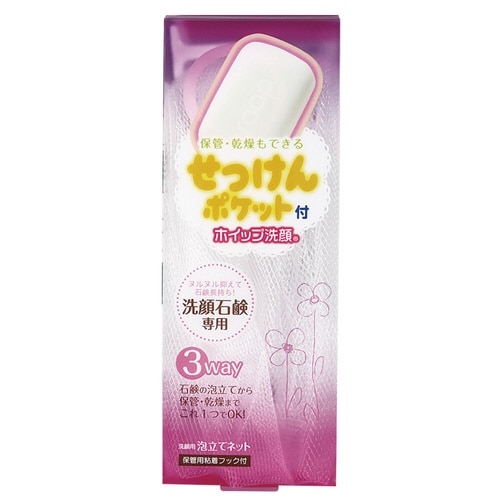 洗顔石けん専用の泡立てネットです。 ネット内側には石けんを入れたまま保管ができるポケットがついています。 もむだけで簡単にマシュマロのようなきめ細かな泡をすばやく作れます。 |