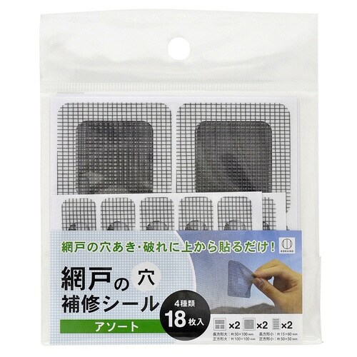 補修テープ 網戸の穴 補修シール 4サイズ 18枚入り ※9個以上から注文可能(販売価格は1個単位の価格)