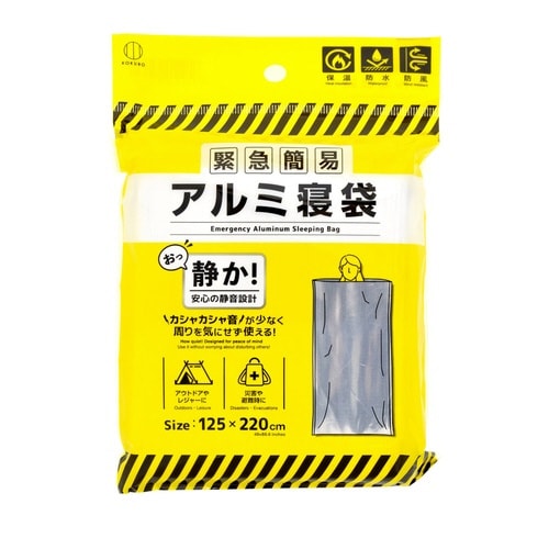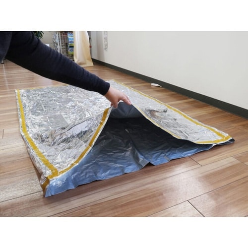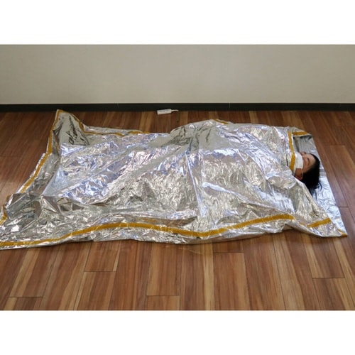災害時に役立つ静音タイプの寝袋です。 アルミの保温効果で温かく、毛布などと併用すると保温力がアップします。 コンパクトになるのでアウトドアに携帯しても荷物になりません。 |