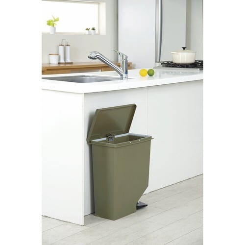 ゴミ箱 35L 棚下・カウンター下にも置けるペダルペール グリーン