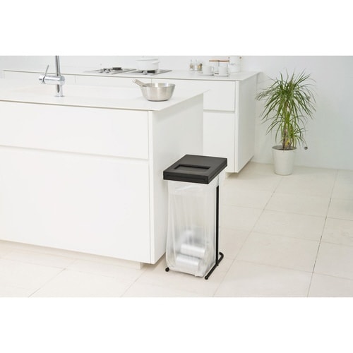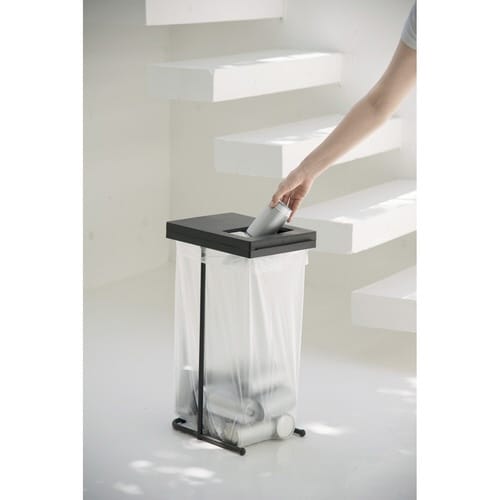 ゴミ袋をかけてふたをするだけで使えるゴミ袋ホルダーです。 ゴミ箱の容量にかかわらず袋いっぱいにゴミを入れられます。 プッシュふた、手で開く、2通りの捨て方ができます。