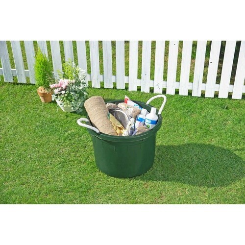飲料水の冷却・園芸用品の収納・ワンちゃんのシャンプーなど、幅広い用途で使用して頂く事ができる丈夫な丸型バケツです。 簡単差し込みタイプのホース止め付きです。 持ち運びに便利な持ち手ひも付きです。 |