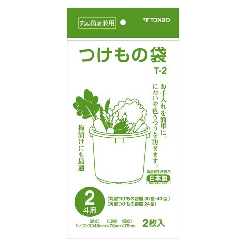 お漬物や味噌・粕等の保存にオススメな丸型・角型兼用のつけもの袋(2枚入り)です。 つけもの袋を使用することでにおいや色移りを防ぎ、お手入れが楽になります。 梅干などの酸による変質もありません。 |
