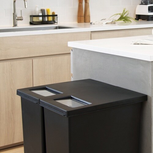 フラットなフタで棚下でも使えるプッシュ&オープンのゴミ箱です。 小さなゴミを手軽に捨てられるプッシュ式、高さを調節して捨てられるオープン式の2種類があります。 |