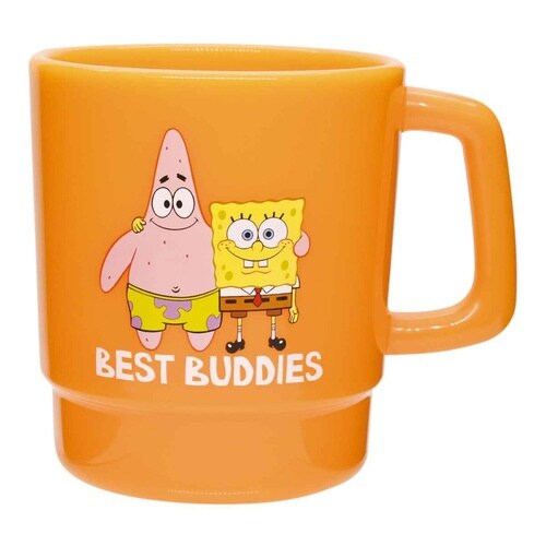 軽くて丈夫なスポンジボブのプラスチック製マグカップ350mlです。 落としても割れにくいプラスチック製なので、お子さまでも安心です。 持ち手はスクエアタイプで持ちやすい形状です。 |