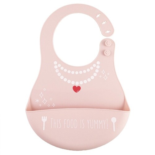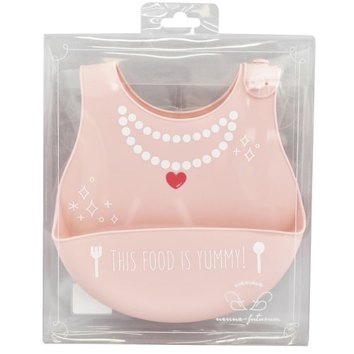 可愛いパステルピンクのネックレス柄、食べこぼしをしっかりキャッチするポケット付きのベビーエプロンです。 シリコーン製で汚れてもサッと洗えます。 首回りは3段階にお子様の成長に合わせて調節できます。 |