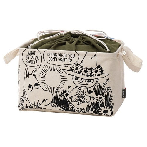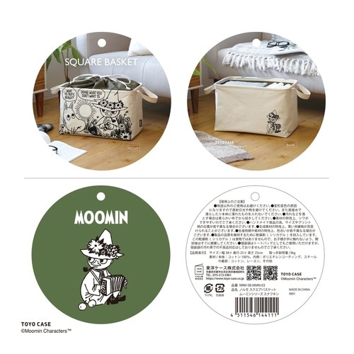 使い勝手の良いサイズ感のスクエアバスケットです。 ナチュラルな素材とムーミンのアートでオシャレに仕立てました。 本体には、テクスチャ感のあるコットン100%の生地を使用しています。 |