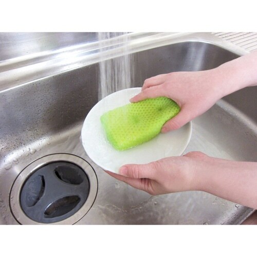 水だけで汚れを落とすキッチンスポンジです。 細かいアクリル繊維構造が汚れとミクロに接触し汚れを拭き取って、水で洗い流します。 少量の洗剤を併用するとより、効果的に汚れを落とします。 |