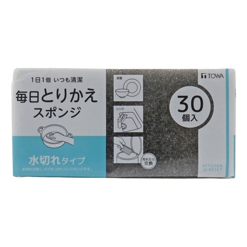 水切れが良い使い切りスポンジ30個入です。 1day使い切りのスポンジだから菌や汚れが付いたものは1日の終わりに捨て、衛生的なキッチンを保つことができます。 |