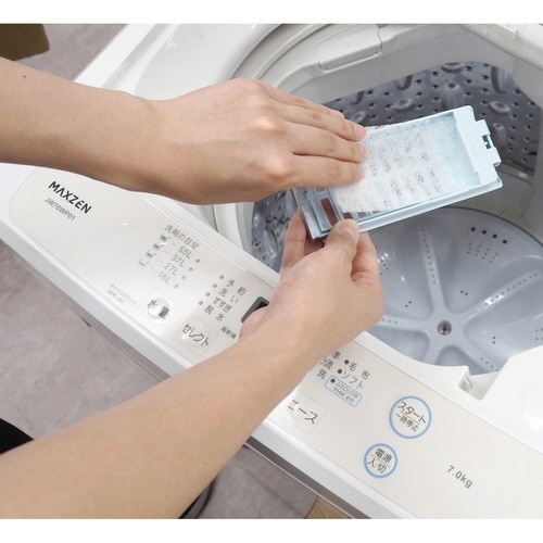 縦型洗濯機の糸くずフィルターケースの掃除の手間を減らせます。 不織布製で細かいゴミまで絡め取ります。 捨てるだけでゴミ取りケースのお手入れが完了します。 |