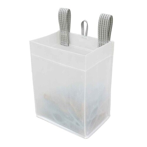 洗濯ピンチや掃除小物などをすっきり整理できる、ポケット型のランドリー収納です。 テープファスナー付きのベルトでポールなどに吊るしたり、吊りヒモをフックなどに掛けて保管できます。 |