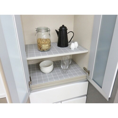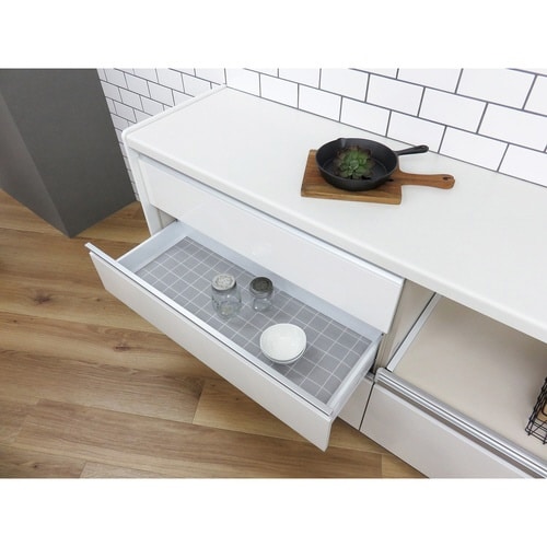 キッチンボードの棚や引き出し、食器棚に敷くシステムキッチンシート35×360cmです。 シート下面にすべりにくい素材を使用しているので敷きズレしにくいです。 |