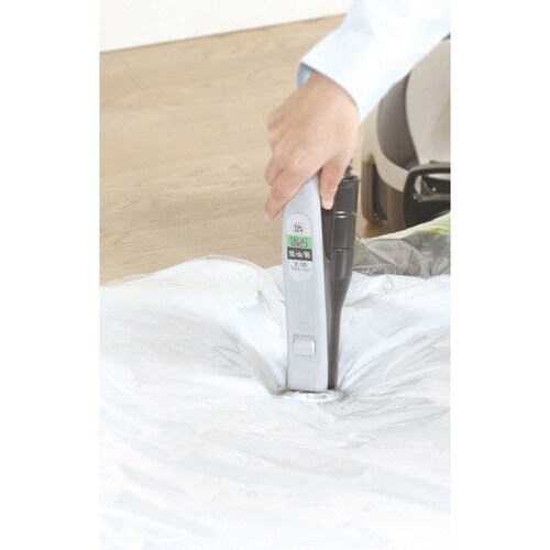 手で押すだけでも掃除機でもどちらでも圧縮が可能な布団圧縮袋、Lサイズです。 吸引口に突起のある掃除機でも利用できます。 フィルムの内側に、無機系防ダニ剤を練り込んでいます。 |