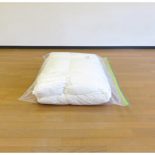 かさばる布団収納のお悩みを解決してくれる圧縮パックMです。 バルブは海外製掃除機にも対応しています。 開けやすい段違いの、閉めると色が変わるチャックを採用しています。 |