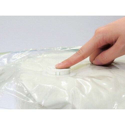 上から押すだけで簡単に圧縮できる布団用圧縮パックLサイズです。 ダブル掛け布団1枚やシングル掛け布団2枚の収納に適しています。 掃除機を使わずに手で空気を押し出せる「開閉ミニバルブ」付きです。 |