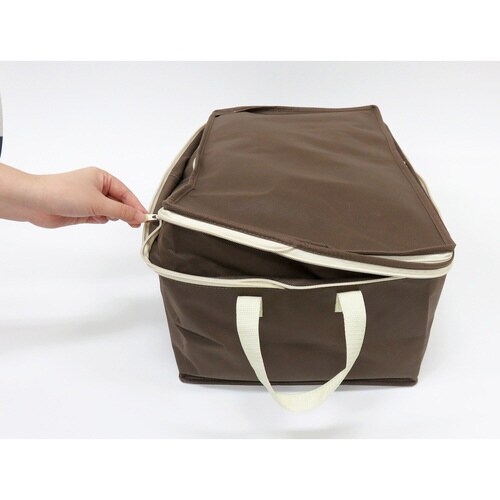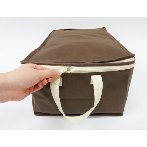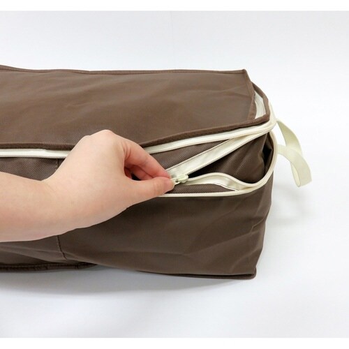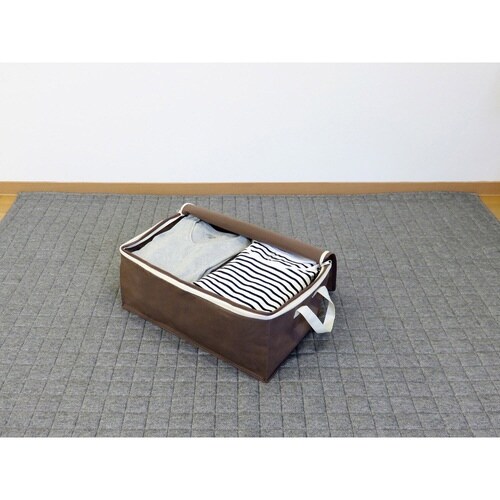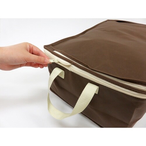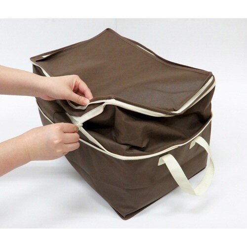 ヒミツのファスナーの開閉によって高さを2倍にする事ができる衣類用収納袋です。 ファスナーを閉じれば薄手の夏物衣類に、開ければかさばる冬物衣類の収納に最適です。 |