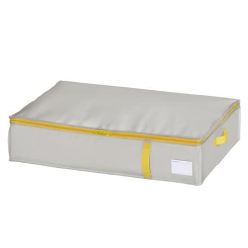 布団をクローゼットのすきまに立てて収納できます 羽毛布団をぎゅっと押して、傷めることなく約1/2の大きさに収納できます。 イエローカラーがアクセントの北欧風デザインです。 |