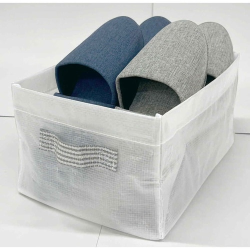 『FIRSTO』半透明収納ケースです。 来客用のスリッパ、ペット用品などをまとめて収納できます。 収納と便利さを兼ね備えた折りたたみ式収納です。 取っ手付きです。 |