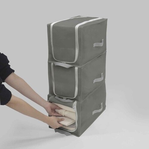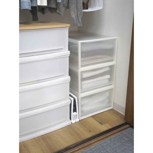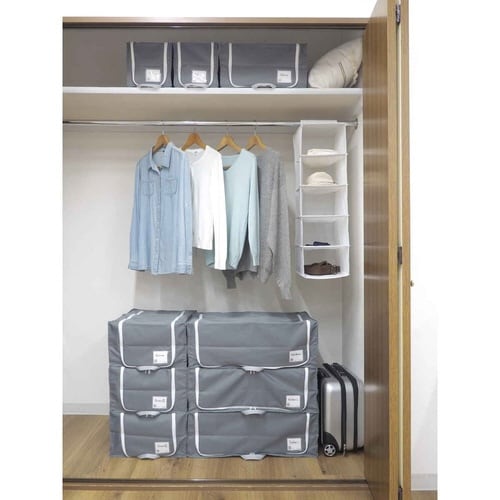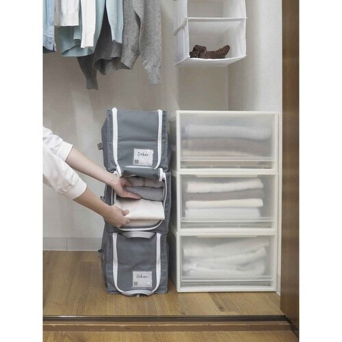 フレーム付き衣類収納袋 『Sサイズ』です。 未使用時はコンパクトに折りたためて、隙間に収納できます。 「フレーム+生地」だから軽くて洋服を入れても持ち運びが楽です。 |