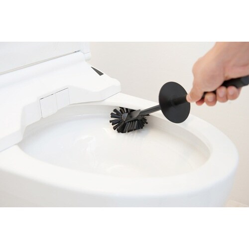 深みのある風合いがトイレのインテリアにマッチ シリーズで揃えてワンランク上の空間に 表面を傷つけにくいソフトタッチのブラシ 水はね防止ガード付き 便器のフチ裏にしっかりフィット |