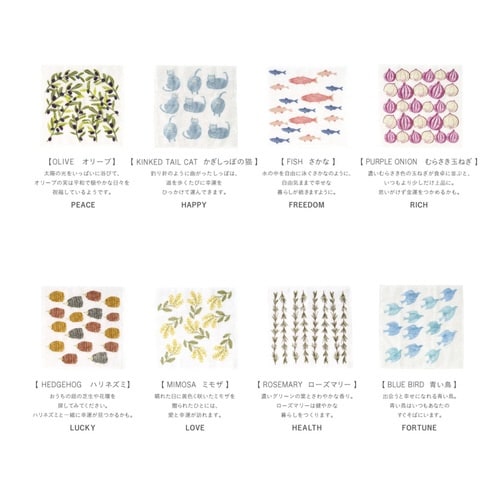しあわせモチーフがデザインされたかや生地ふきんです。 台拭き、食器拭き、キッチン周りの拭き掃除などに使いやすいサイズです。 とても柔らかく使い心地のやさしい7枚重ねです。 |