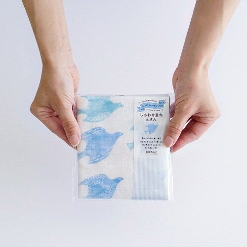 ふきん ハッピーモチーフ しあわせ重ねふきん 30×30cm 青い鳥 ※5個以上から注文可能(販売価格は1個単位の価格)