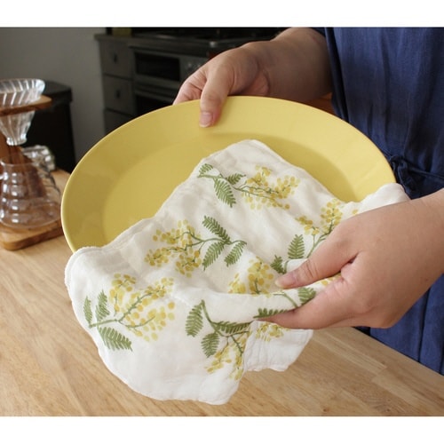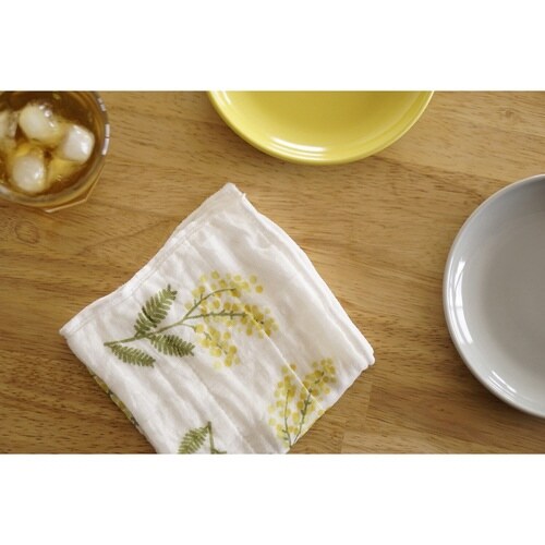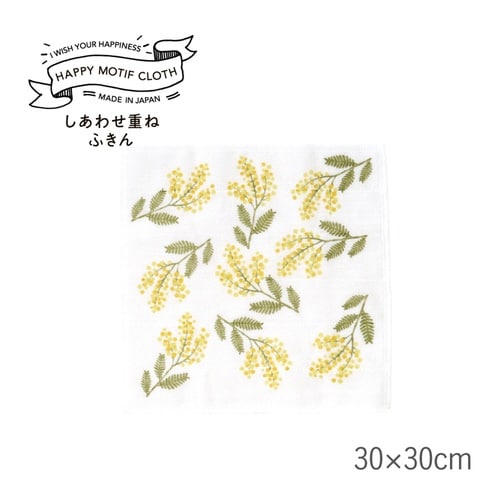 ふきん ハッピーモチーフ しあわせ重ねふきん 30×30cm ミモザ ※5個以上から注文可能(販売価格は1個単位の価格)