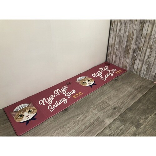 キッチンマット やわらかプニプニ折りたためるフロアマット フェリシモ猫部 45×180cm ピンク ※2個以上から注文可能(販売価格は1個単位の価格)