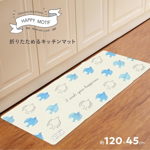 キッチンマット ハッピーモチーフ 折りたためるフロアマット 45×120cm 青い鳥 ※2個以上から注文可能(販売価格は1個単位の価格)