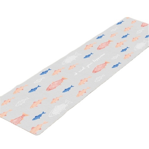 キッチンマット ハッピーモチーフ 折りたためるフロアマット 45×180cm サカナ
