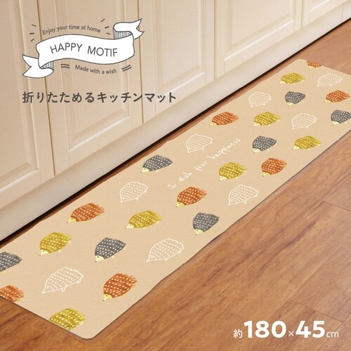 キッチンマット ハッピーモチーフ 折りたためるフロアマット 45×180cm ハリネズミ