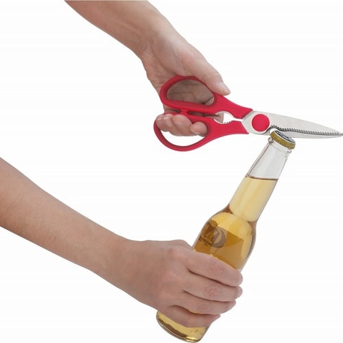 ひとつで何役もこなす大変万能なキッチンバサミです。 キャップオープナーやナッツクラッカーとしてもお使いいただけます。 また、持ち手部分を両手でゆっくり開くと刃が分解でき、洗浄しやすく清潔です。 |
