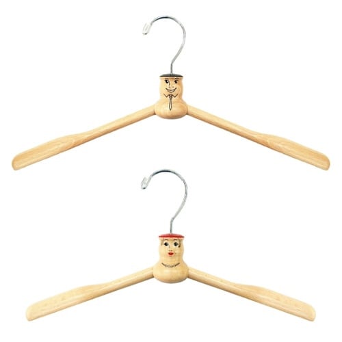 「ロクサン」シリーズの木製ハンガーです。 ユーモラスな男性と女性が描かれた男性用と女性用のセットです。 両肩部分は太めで丸みがあって掛けやすく、衣服に優しいです。 プレゼントにも最適です。 |