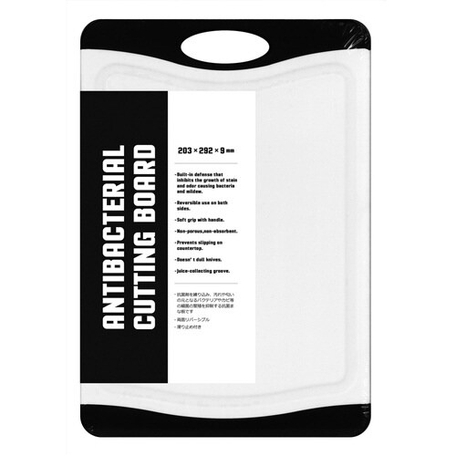 ブラック×ホワイトのスタイリッシュな見た目がおしゃれなまな板です。 ひとつ持っていると便利な小さめサイズです。 抗菌素材が練り込まれているので、細菌の繁殖を抑制します。 |