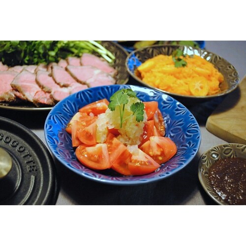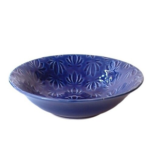 東洋の花(蓮)を西洋皿にデザインした、ちょっと魅惑的な食器です。 和食、洋食とジャンルを問わずにお料理が映えてくれます。 サラダやフルーツ、取り分け皿にしたりと使い勝手の良いサイズです。 |