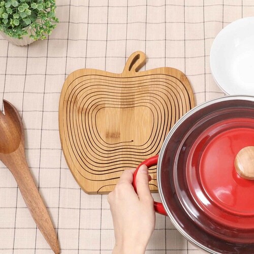 見せる収納にぴったりの竹製バスケットSサイズです。 折りたたんで鍋敷きとしても使えます。 すり鉢状の深型なのでしっかりものが入ります。 コンパクトなるので収納場所をとりません。 |
