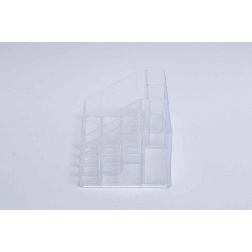 クリアタイプのシンプルなオーガナイザーです。 立てて収納できるオーガナイザーは、コスメグッズの収納にぴったりです。 文房具、美容液の小瓶、薬瓶の収納など様々なシーンで活躍します。 |