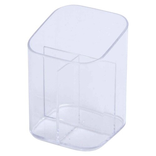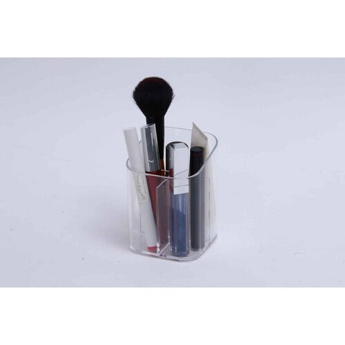 クリアタイプのシンプルなブラシスタンドです。 3箇所に分かれる仕切りがあり、コスメグッズの収納にぴったりです。 文房具、体温計や爪切りの収納など様々なシーンで活躍します。 |