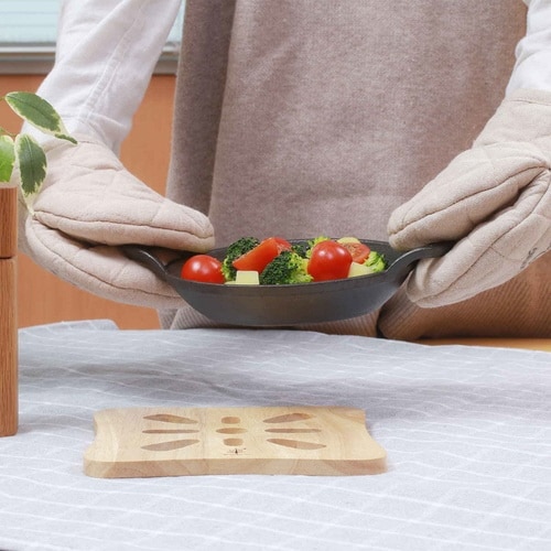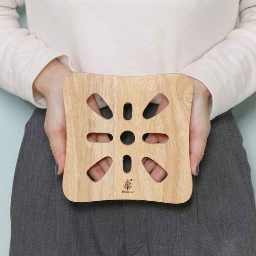 シンプルで使いやすい木製の鍋敷きです。 ほどよい厚みで鍋やグラタン皿などの熱い物が置きやすいです。 |