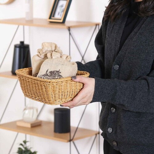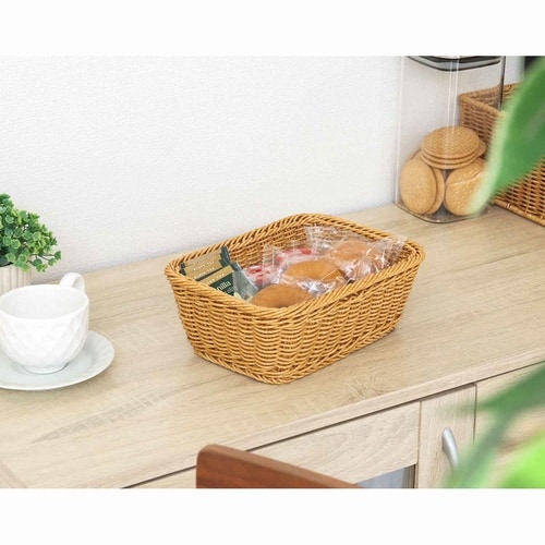 天然素材で編まれたような自然な温かみを感じるバスケットです。 汚れたら水洗いできます。 小物入れに最適なサイズです。 キッチン、リビングなど、さまざまな場所の収納に役立ちます。 |