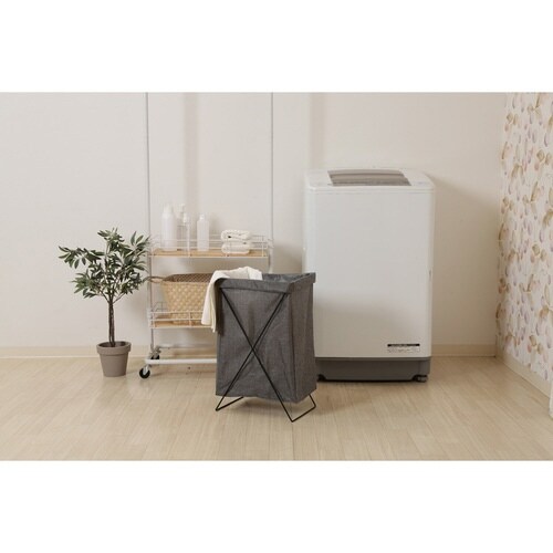 幅広の口で深さがあるので、洗濯物の出し入れがしやすくたくさん入ります。 コンパクトに折りたたんで家具の隙間に収納できて便利です。 キッチンやリビングなど様々な場所で使えます。