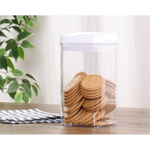 ビスケットなどの保存にも便利な2.3Lの保存容器です。 同シリーズの2.3L、3.1Lとスタッキング可能です。 プルタブタイプのフタで簡単開閉できます。 広口なので補充やお手入れしやすくなっています。 |